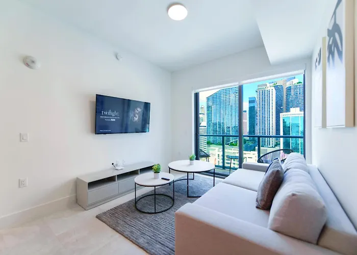 The spacious 69 m² Central Brickell Condo Walk To Shops & Dining Miami lies 2.1 km from the Phillip and Patricia Frost Museum of Science and about 10 minutes on foot from Brickell tube station. Featuring a hammam and a sauna, the 2-bedroom apartment is situated in the immediate vicinity of the Jose Marti Park.
